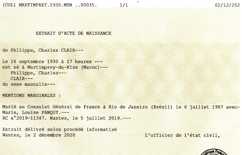 1930 Acte de naissance (Martimprey-du-Kiss, Maroc)