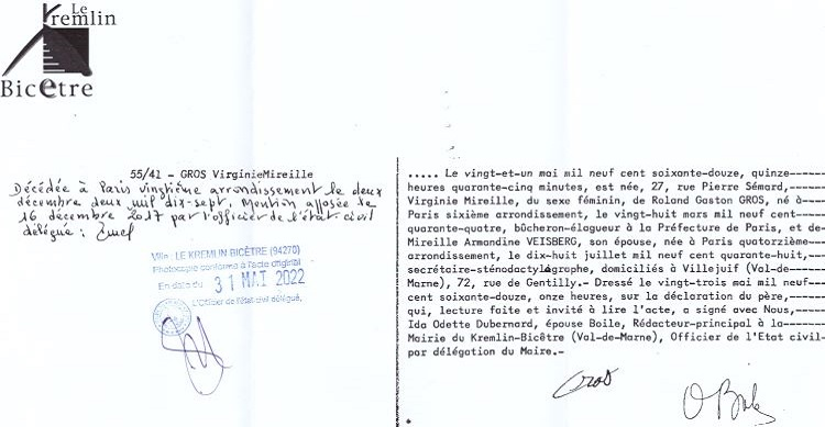 1972 Acte de naissance (Le Kremlin-Bicêtre, France)