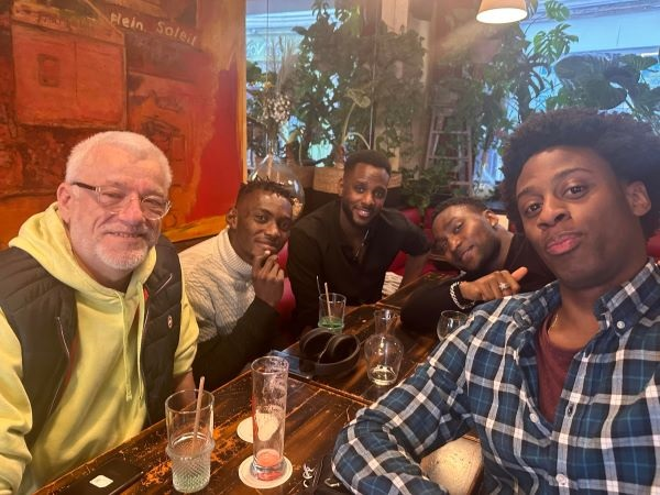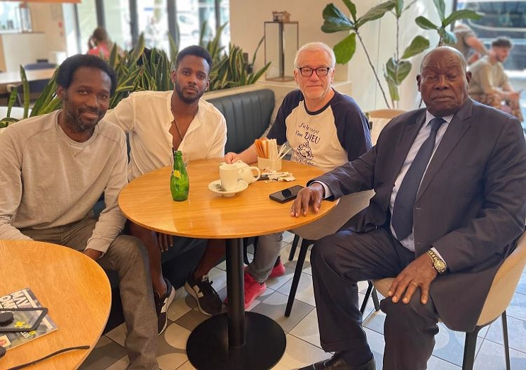 ![]() 2022, le 19 mars, Première rencontre du cinéma de CinéArtistes, à Paris | ![]() 2022, le 15 juin, avec Massein Péthas et Sébastien Kamba, à Paris. | ![]() 2023 Le 10 mai, à Paris, avec Venicy Moundaya, Alexis Baginama & Herman Kimpo. © Philippe PELLETIER | ![]() 2023 Le 10 mai, à Paris, avec Venicy Moundaya, Alexis Baginama & Jimmy Woha-Woha. © Philippe PELLETIER | ||