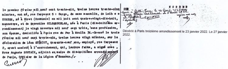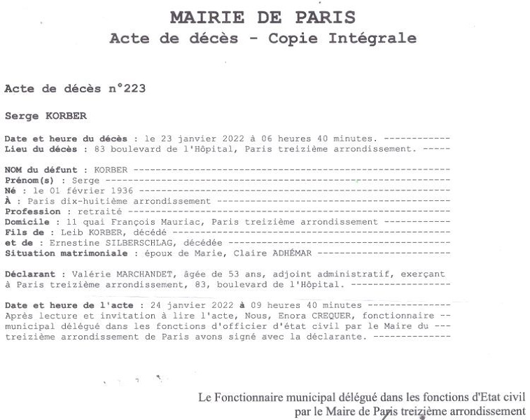 2022 Acte de décès (Paris 13ème, France)