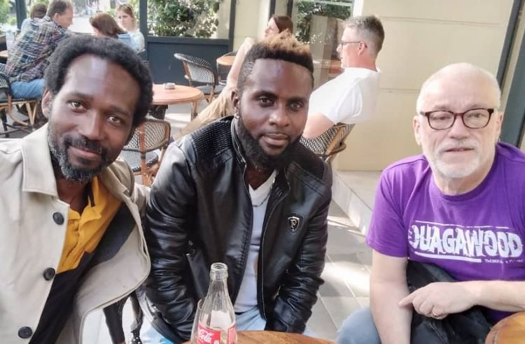 ![]() 2022 à Paris, le 27 décembre © Philippe PELLETIER | ![]() 2022 Affiche dédicacée de «Les temples maudits du Congo-Brazzaville» | ![]() 2022 Avec Mike Yombi à Paris, le 19 mars © Philippe PELLETIER | ![]() 2022 Avec Olivier Kissita et Sébastien Kamba, le 15 juin à Paris. | ||
