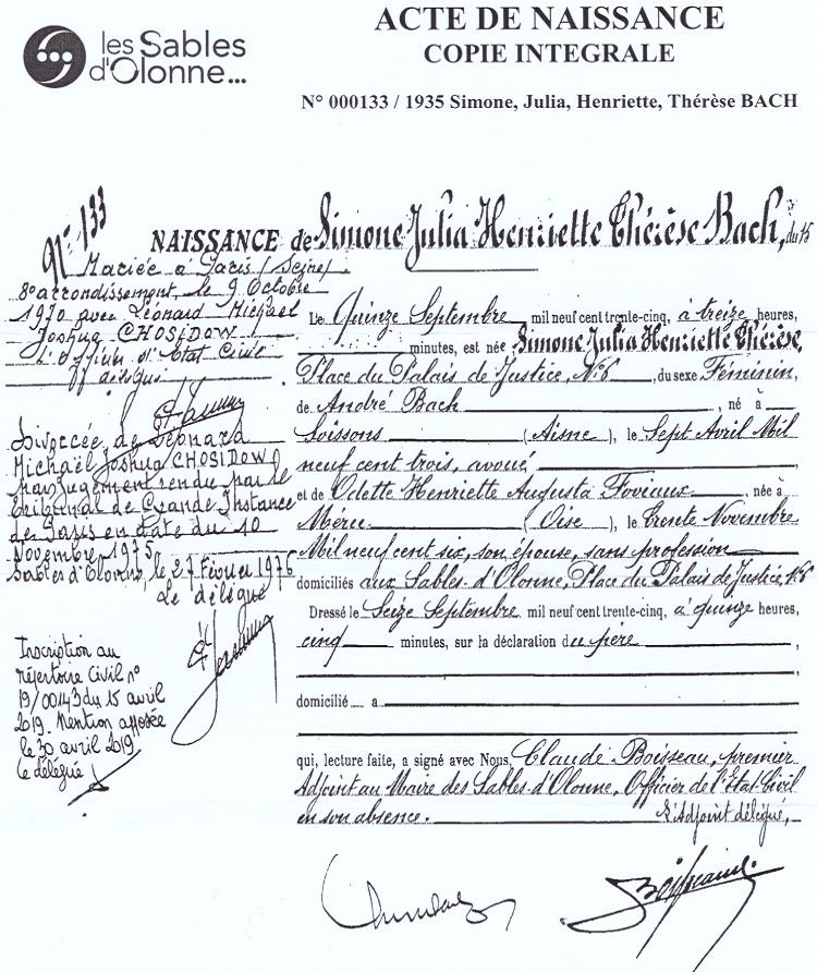 1935 Acte de naissance (Les Sables-d’Olonne, France)