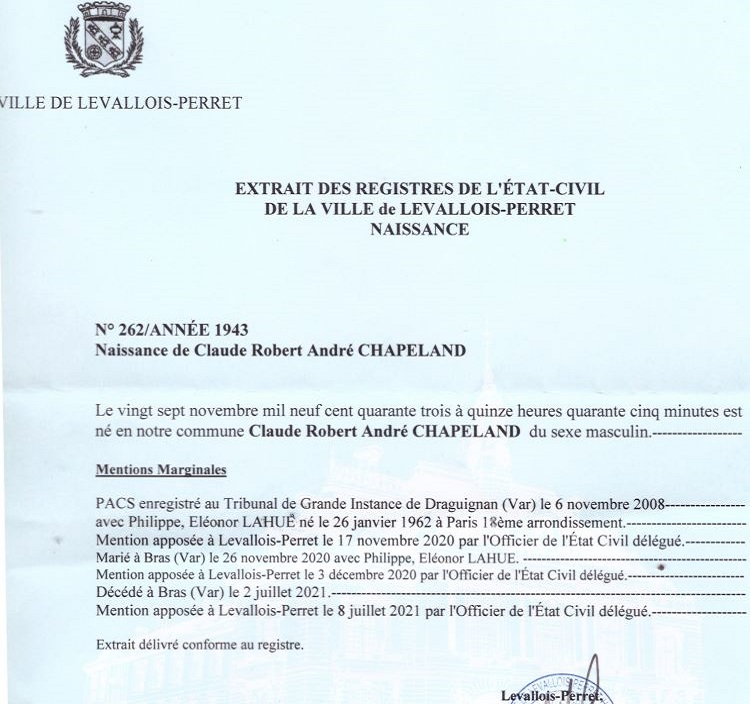 1943 Acte de naissance (Levallois-Perret, France)
