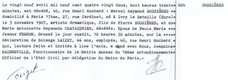 1982 Acte de décès (Paris 18ème, France)