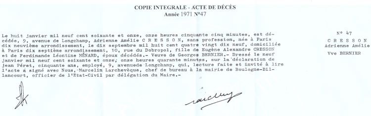 1971 Acte de décès (Boulogne-Billancourt, France)