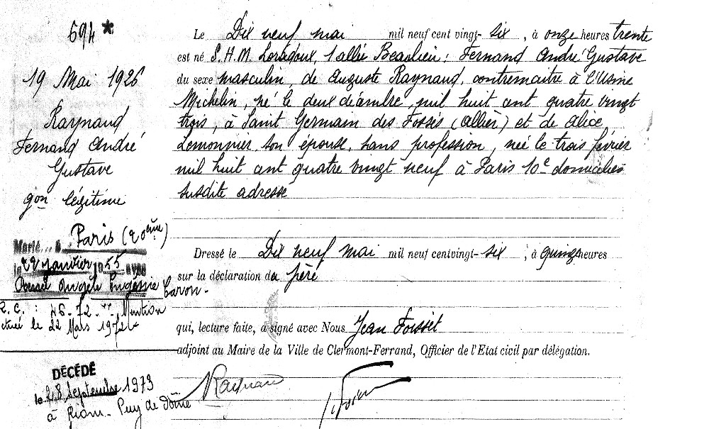 1926 Acte de naissance (Clermont-Ferrand, France)