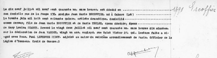 1941 Acte de décès (Paris 16ème, France)