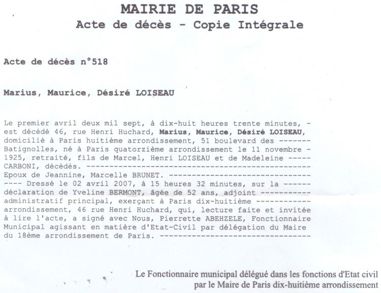 2007 Acte de décès (Paris 18ème, France)