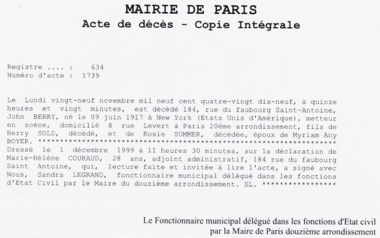 1999 Acte de décès (Paris 12ème, France)