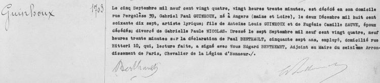 1924 Acte de décès (Paris 16ème, France)