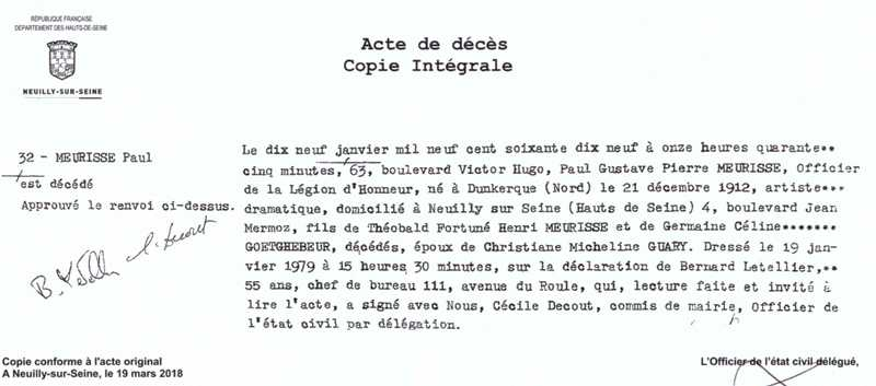 1979 Acte de décès (Neuilly-sur-Seine, France)