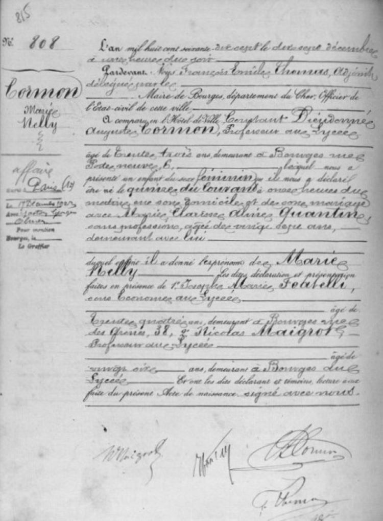 1877 Acte de naissance (Bourges, France)