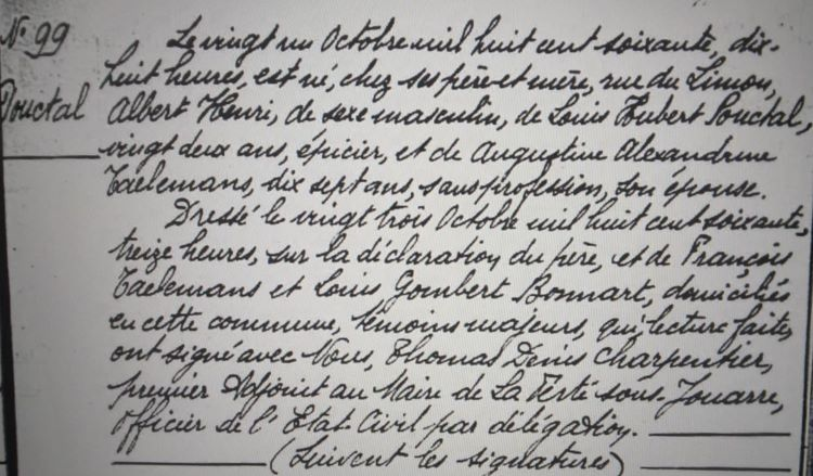 1860 Acte de naissance (La Ferté-sous-Jouarre, France)