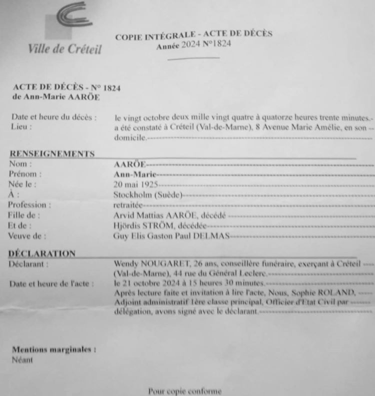 2024 Acte de décès (Créteil, France)