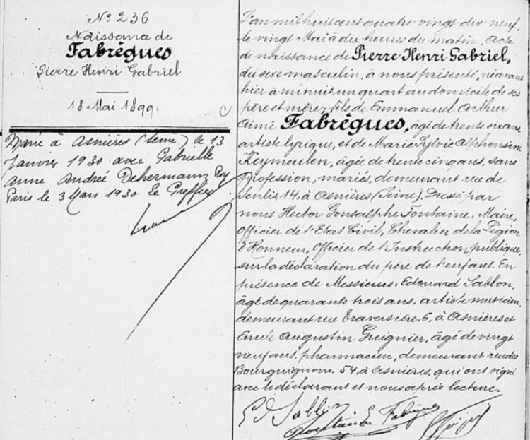 1899 Acte de naissance (Asnières-sur-Seine, France)