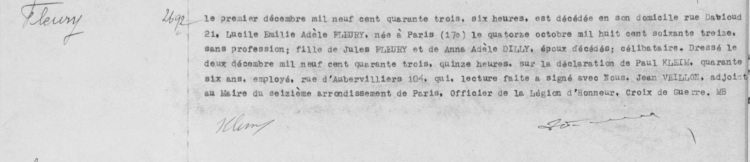 1943 Acte de décès (Paris 16ème, France)