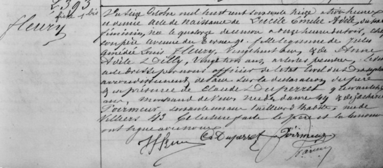 1873 Avcte de naissance (Paris 17ème, France)