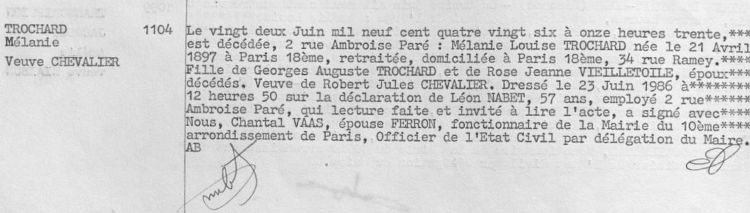 1986 Acte de décès (Paris 10ème, France)