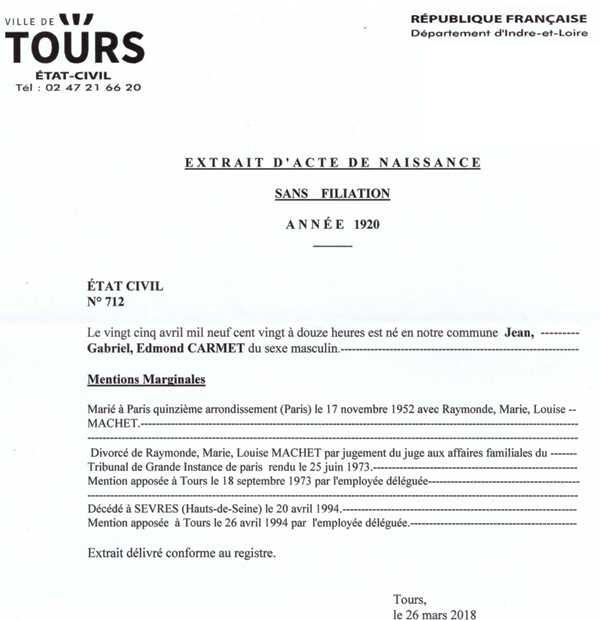 1920 Acte de naissance (Tours, France)