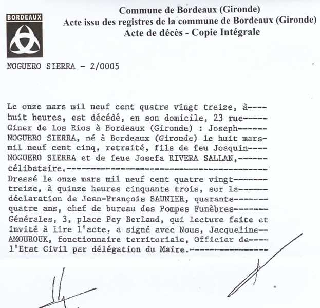 1993 Acte de décès (Bordeaux, France)