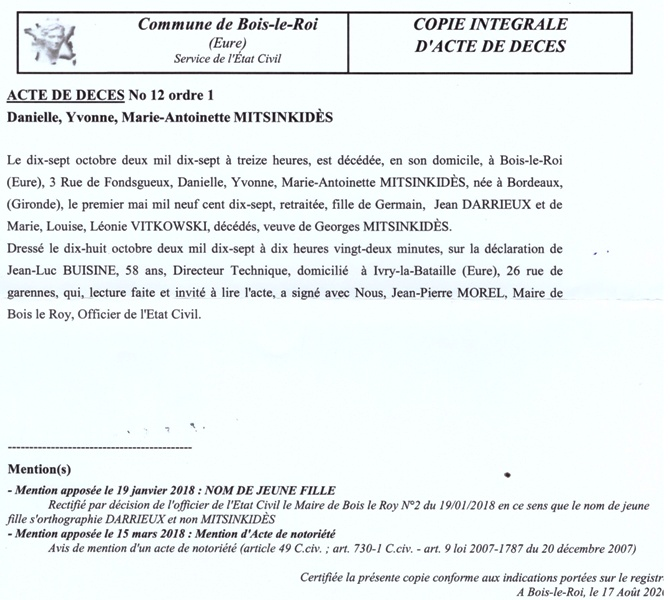 2017 Acte de décès (Bois-le-Roi, France)
