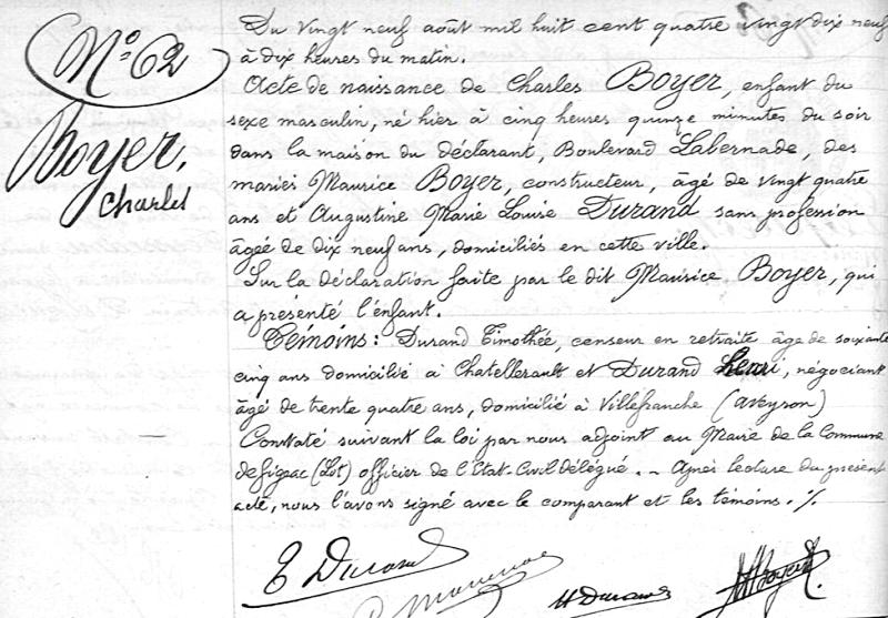 1899 Acte de naissance (Figeac, France)