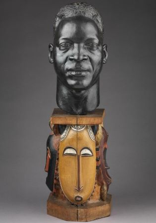 1925 Buste en bronze sur socle en bois sculpté et peint de Evariste Jonchère.