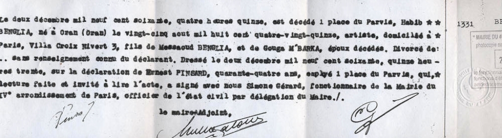 1960 Acte de décès (Paris 4ème, France)