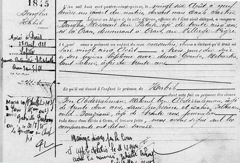 1895 Acte de naissance (Oran, Algérie Française)