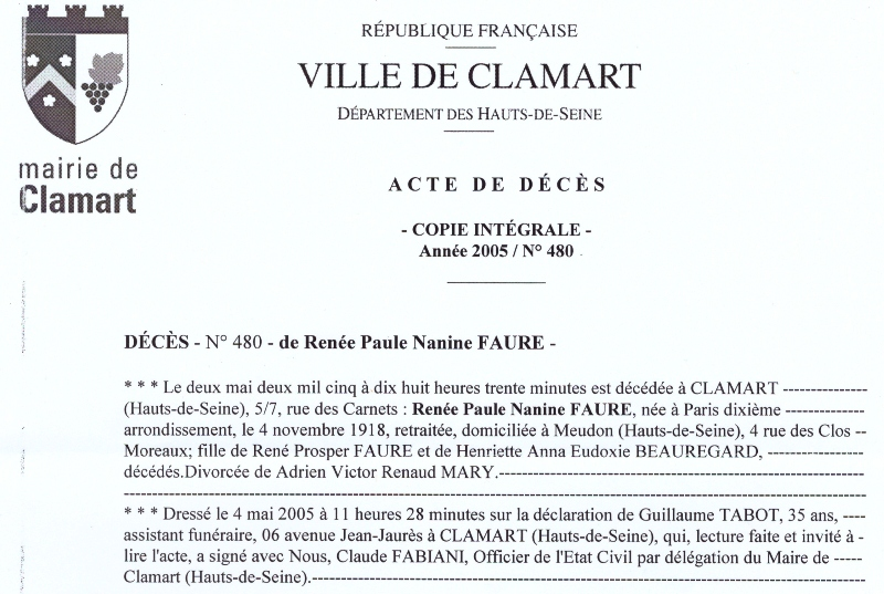 2005 Acte de décès (Clamart, France)