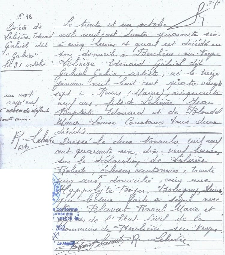 1946 Acte de décès (Berchères-sur-Vesgre, France)