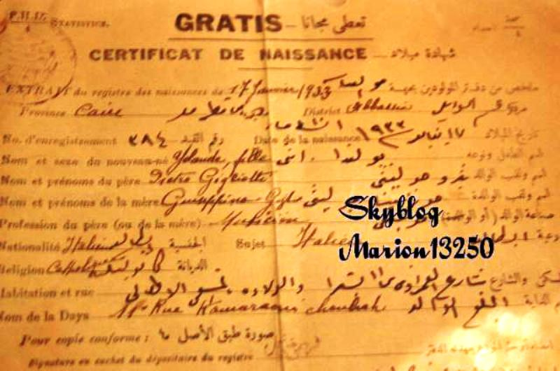 1933 Certificat de naissance (Le Caire, Egypte)