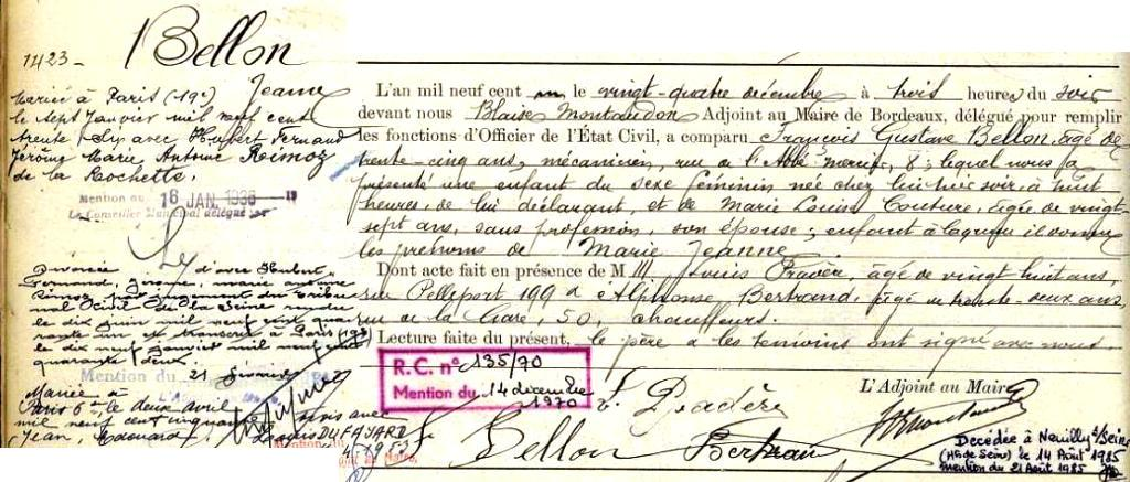 1985 Acte de décès (Neuilly-sur-Seine, France)