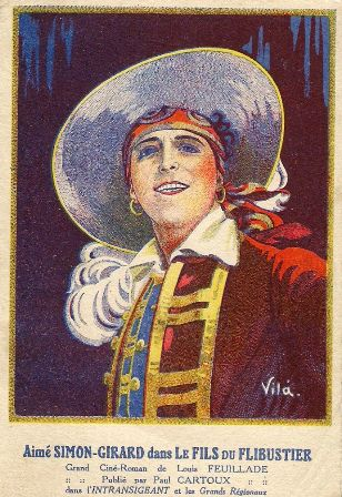 Artiste accompli, c’est naturellement que sa carrière s’oriente vers le cinématographe à la veille de la Première Guerre mondiale. En 1913, Aimé Simon-Girard est aux côtés de Gabriel de Gravone dans «La maison du baigneur», un court-métrage réalisé par Adrien Caillard, un des pionniers du cinéma français. L’année suivante, il fait une rencontre qui va bouleverse son parcours professionnel. En effet, Henri Diamant-Berger, l’engage pour sa production, «Loin des yeux, près du cœur», avec en vedette Yvonne Serguyl. Alors que la première Guerre mondiale est au plus fort des combats, Aimé s’éloigne des plateaux pour se consacrer à la scène. En 1921, il retrouve Diamant-Berger, devenu son ami, alors que celui-ci met en scène «Les trois mousquetaires», une des premières adaptations du roman de Alexandre Dumas père. Durant le tournage épique de ce sérial en douze épisodes, Aimé Simon-Girard dans le rôle de d’Artagnan, donne la réplique à Henri Rollan, Jeanne Desclos et Charles Dullin, entre autres. Louis Feuillade, un autre vétéran du Septième Art et habitué des cinéromans, fait appel à son talent pour les douze volets du «Fils du flibustier», avec Georges Biscot, Sandra Milovanoff et Gaby Morlay débutante.