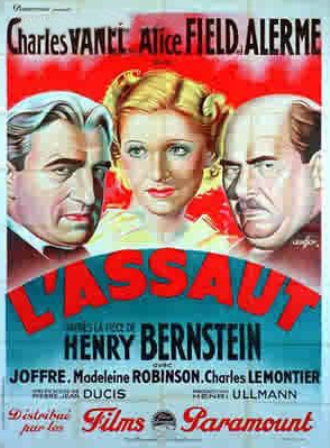 ![]() 1935 Tovaritch – de Jacques Deval, Germain Fried, Jean Tarride & Victor Trivas avec André Lefaur & Junie Astor | ![]() 1936 L’assaut – de Pierre-Jean Ducis avec Alice Field, Charles Vanel, Madeleine Robinson & Janine Darcey | ![]() 1941 Dernière aventure – de Robert Péguy avec Annie Ducaux, Jean Max & Blanchette Brunoy | ![]() 1949 Un trou dans le mur – de Emile Couzinet avec Marguerite Pierry, Raymond Galle & Gaby Basset | ||