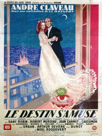 En 1944, on accuse André Claveau d’être un collaborateur du fait de sa présence sur «Radio Paris» ainsi que pour avoir chanté pour les prisonniers. Il est condamné par le Comité d’Epuration Nationale à l’interdiction de chanter du 15 septembre 1944 au 22 janvier 1945 mais ses milliers d’admiratrices ne l’ont pas oublié. Dès 1946, il triomphe aux côtés de Bourvil dans «La bonne hôtesse», opérette de Jean-Jacques Vital et Serge Veber, sur une musique de Bruno Coquatrix et dans une mise en scène de Fred Pasquali, au Théâtre de l’Alhambra. En 1947, il obtient le premier rôle dans le film «Le destin s’amuse» réalisé par Emil Edwin Reinert. Il y interprète un gangster sympathique qui séduit Dany Robin. Noël Roquevert, Robert Murzeau et Jean-Roger Caussimon complètent la distribution.