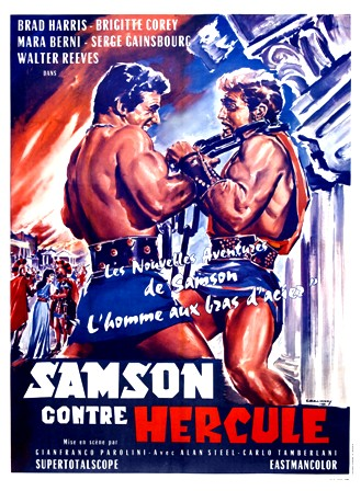 Recruté en 1955 par Hollywood, Brad Harris débute comme doublure et cascadeur dans plusieurs productions. En 1960, Stanley Kubrick l’engage pour jouer un gladiateur dans «Spartacus» auprès de Kirk Douglas. C’est en Italie que Brad Harris s’impose dans toute une série de péplums, très en vogue à cette époque. Guido Malatesta lui confie le rôle de Goliath dans «Goliath contre les géants» (1960). Puis Gianfranco Parolini le met en scène dans «Hercule se déchaîne» (1961), où dans le rôle du héros grec, il est informé que le violent et fourbe Menisto, Serge Gainsbourg, a saisi le trône du roi Nisia, mais Hercule va déjouer ses plans. Profitant de l’engouement du public pour les péplums, Gianfranco Parolini le sollicite pour jouer Samson, face à Sergio Ciani en Hercule, dans «Samson contre Hercule» (1961).