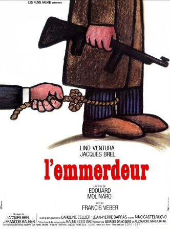 Attiré par la mise en scène, Jacques Brel passe à deux reprises à la réalisation avec deux films personnels qui s’avèrent de gros échecs publics, «Franz» (1971) avec Barbara et Danièle Evenou et «Le Far West» (1972) présenté au Festival de Cannes. Entre-temps, dans «Les assassins de l’ordre» (1970) de Marcel Carné, il joue un juge d’instruction chargé d’enquêter sur la mort d’un homme au cours d’un interrogatoire dans un commissariat. Avec Lino Ventura, Charles Denner, Charles Gérard et Aldo Maccione, il intègre la bande de cinq truands dans «L’aventure, c’est l’aventure» (1971), comédie de Claude Lelouch qui obtient un gros succès public. Il enchaîne avec «Le bar de la Fourche» (1972) de Alain Levent qui permet à Isabelle Huppert d’obtenir son premier grand rôle. Il retrouve Lino Ventura pour «L’emmerdeur» (1973) de Edouard Molinaro, l’adaptation de la pièce de théâtre «Le contrat» de Francis Veber, créée par Jean Le Poulain et Raymond Gérôme. Dans cette confrontation d’un tueur à gages et d’un représentant de commerce dépressif apparaît pour la première fois le personnage de François Pignon, patronyme utilisé de manière récurrente par Francis Veber dans ses films. «L’emmerdeur» fait l’objet d’un remake par Billy Wilder sous le titre «Buddy Buddy», en 1981, avec Jack Lemmon et Walter Matthau, tandis que Francis Veber signe sa propre version cinématographique en 2008 avec Patrick Timsit et Richard Berry.