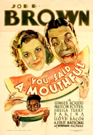![]() 1932 À tour de brasses (you said a mouthful) de Lloyd Bacon avec Ginger Rogers, Preston Foster & Sheila Terry | ![]() 1936 Fièvre de cheval (Polo Joe) de William C. McGann avec Carol Hughes & Richard Skeets Gallagher | ![]() 1941 Ferme-la! (shut my big mouth) de Charles Barton avec Adele Mara, Victor Jory & Lloyd Bridges | ![]() 1958 Certains l’aiment chaud (some like it hot) de Billy Wilder avec Marilyn Monroe & Tony Curtis | ||