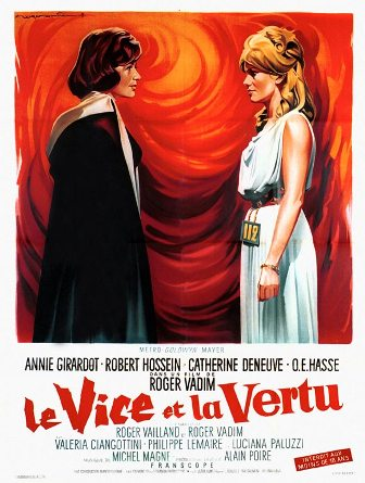 ![]() 1956 Et dieu… créa la femme – de Roger Vadim avec Brigitte Bardot, Curd Jürgens & Jean-Louis Trintignant | ![]() 1962 Le repos du guerrier – de Roger Vadim avec Brigitte Bardot, Robert Hossein & James Robertson Justice | ![]() 1962 Le vice et la vertu – de Roger Vadim avec Catherine Deneuve, Annie Girardot & Robert Hossein | ![]() 1968 Barbarella – de Roger Vadim avec Jane Fonda, Ugo Tognazzi, David Hemmings & Claude Dauphin | ||