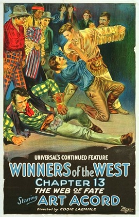 Sérial en 18 épisodes 1 : Cave of despair 2 : The spider’s web 3 : The mummy man 4 : The death Trap 5 : Trails of treachery 6 : Furnace of fear 7 : Brink of eternity 8 : Pit of evil 9 : The opal bracelet 10 : In the enemy’s hands 11 : A race with death 12 : The bridge of fear 13 : The hill of horror 14 : A jest of fate 15 : A conquest of courage 16 : Fire of fury 17 : The wings of destiny 18 : The avenging conscience Winners of the West – de Edward Laemmle avec Myrtle Lind Sérial en 18 épisodes 1 : Power of gold 2 : Blazing arrow 3 : Perils of the plains 4 : The flame of hate 5 : The fight for a fortune 6 : Buried alive 7 : Fires of fury 8 : Pit of doom 9 : Chasm of peril 10 : Sands of fear 11 : Poisoned pool 12 : Duel in the night 13 : Web of fate 14 : Trail of mystery 15 : Unmasked 16 : Hidden gold 17 : Cave of terror 18 : The end of the trail CM The show down – de William James Craft avec Marcella Pershing CM The fightin’ actor – de William James Craft avec Bob Kortman CM Fair fighting – de Edward Laemmle avec Isobel Wilford CM The cowpuncher’s comeback – de Edward Laemmle avec Ben Corbett CM The call of the blood – de Edward Laemmle avec Laura La Plante |