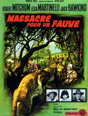 ![]() 1956 Donatella – de Mario Monicelli avec Gabriele Ferzetti, Walter Chiari, Gaby André & Abbe Lane | ![]() 1961 Hatari ! – de Howard Hawks avec John Wayne, Hardy Kruger, Gérard Blain & Red Buttons | ![]() 1963 Massacre pour un fauve (rampage) de Phil Karlson avec Robert Mitchum, Jack Hawkins & Sabu | ![]() 1966 Maroc dossier n° 7 (Maroc 7) de Gerry O’Hara avec Gene Barry, Leslie Phillips & Cyd Charisse | ||