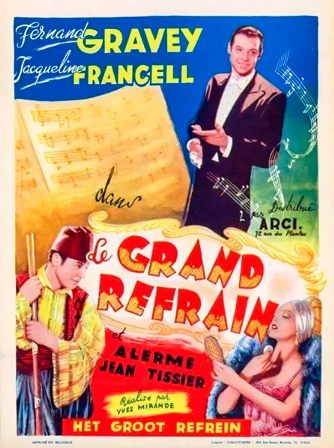 ![]() 1936 Le grand refrain – de Yves Mirande & Robert Siodmak avec Jacqueline Francell & Fernand Gravey | ![]() 1936 Toi, c’est moi – de René Guissart avec Jacques Pills, Georges Tabet, André Berley, Junie Astor & Claude May | ![]() 1942 L’homme qui joue avec le feu – de Jean de Limur avec Ginette Leclerc, Aimé Clariond & Jean Davy | ![]() 1948 Fandango – de Emil Edwin Reinert avec Luis Mariano, Ludmilla Tchérina & Raymond Bussières | ||