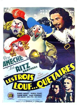 ![]() 1937 Charlie Chan aux jeux olympiques (Charlie Chan at the Olympics) de H. Bruce Humberstone avec Keye Luke | ![]() 1938 Les trois louf’quetaires (the three musketeers) de Allan Dwan avec Don Ameche, Gloria Stuart & Lionel Atwill | ![]() 1938 Trois souris aveugles (three blind mice) de William A. Seiter avec Joel McCrea, Jane Darwell & Loretta Young | ![]() 1941 La colonne secrète (King of the Texas rangers) de John English & William Witney avec Neil Hamilton & Monte Blue | ||