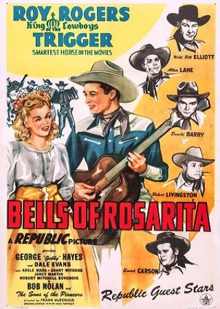 ![]() 1938 Le cow-boy chantant (under western stars) de Joseph Kane avec Carol Hugues, Guy Usher & Smiley Burnette | ![]() 1940 La jeunesse de Buffalo Bill (young Buffalo Bill) de Joseph Kane avec Pauline Moore & Chief Thundercloud | ![]() 1945 Les cloches de Rosarita (bells of Rosarita) de Frank McDonald avec Adele Mara & George Gabby Hayes | ![]() 1946 Les aventures d’Eclair (my pal Trigger) de Frank McDonald avec Dale Evans, Jack Holt & Roy Barcroft | ||
