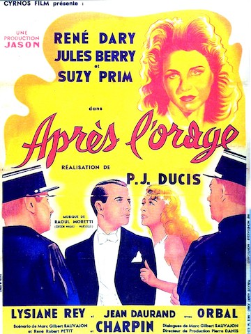 ![]() 1935 Les jumeaux de Brighton – de Claude Heymann avec Raimu, Michel Simon, Jean Tissier & Germaine Aussey | ![]() 1941 L’étrange Suzy – de Pierre-Jean Ducis avec Albert Préjean, Claude Dauphin & Marguerite Moreno | ![]() 1942 Après l’orage – de Pierre-Jean Ducis avec René Dary Jules Berry, Lysiane Rey & Fernand Charpin | ![]() 1949 Au royaume des cieux – de Julien Duvivier avec Serge Reggiani, Jean Davy & Monique Mélinand | ||